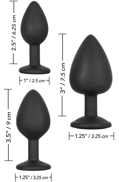 Dette settet med analplugger er perfekt for alle som ønsker å oppdage gleden av anal stimulering. Analpluggene har forskjellige dimensjoner, slik at du kan starte i det små og øke i størrelse i ditt eget tempo. Pluggene er laget av fantastisk myk, kroppssikker silikon for komfortabel bruk. Den flate bunnen av pluggene garanterer trygg og sikker bruk. Det er også en vakker stein i bunnen som gir pluggene et luksuriøst utseende.