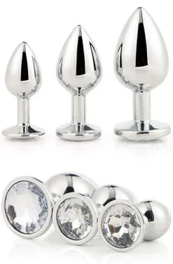- Sett med 3 forkrommede analplugger designet for visuell og sensuell spenning
