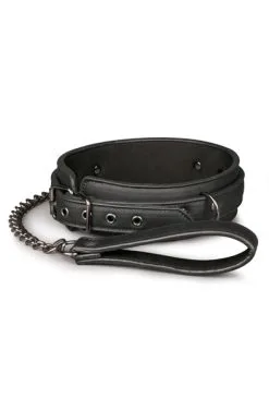 Hold underordnet i nærheten, med dette bondagehalskjedet med matchende bånd. Den er laget av metall og slitesterk lær med skum, slik at den tåler tøff behandling mens den er behagelig å bruke. Halskjedet kan justeres fra 45 til 58 cm og passer perfekt. Båndet er festet til halskjedet med kroker, slik at du enkelt kan ta dem fra hverandre og feste dem til andre leker, for eksempel håndjern, seler og brystvorteklemmer.