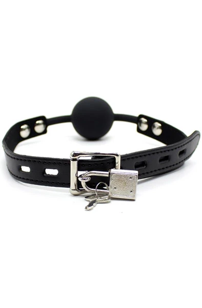 Smidig gagball i litt mindre størrelse. Den har en justerbar stropp med spenne som er ideell for ekstra komfort. Hvis du tør kan du låse gaggen med den medfølgende hengelåsen. Silikonkulen har en diameter på 4 cm og et sett med nøkler er inkludert,
