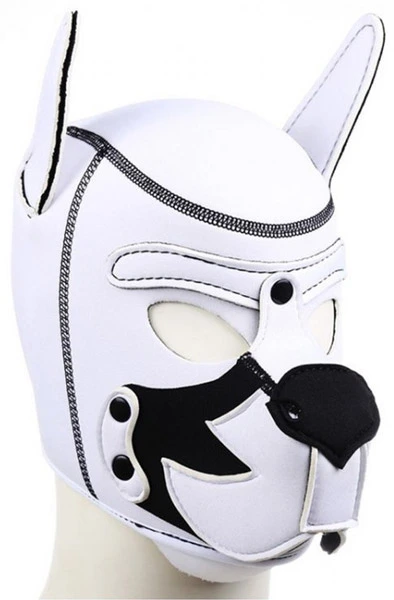 Denne stilige hundemasken fra merket Kinky Puppy er myk og elastisk. Ingen glidelåser eller problemer med snorer å feste. Du bare drar den over hodet, og du er klar til å leke! Laget av neopren med avtagbar snute og ørene er lett bøybare for å indikere humør.