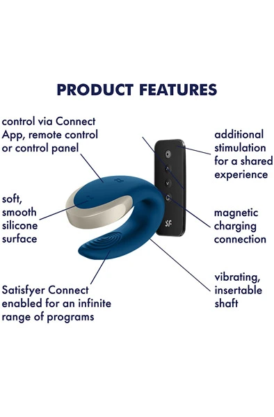 Satisfyer Double Love kan enten styres via den medfølgende fjernkontrollen eller via den gratis Satisfyer Connect-appen. Med appen kan dere oppdage nye sider av kjærlighetslivet deres: I tillegg til å fjernstyre nytelsesgiveren kan dere dessuten skape deres egne vibrasjonsprogrammer eller sette i gang lyd- eller videochatter. Hva venter dere på? Siden parvibratoren har en vanntett (IPX7) overflate, kan den også berike kjærlighetsleken i dusjen eller i badekaret med varme vibrasjoner. Dersom parvibratoren skulle gå tom for kraft, kan de integrerte batteriene lades opp igjen med den medfølgende USB-ladekabelen.