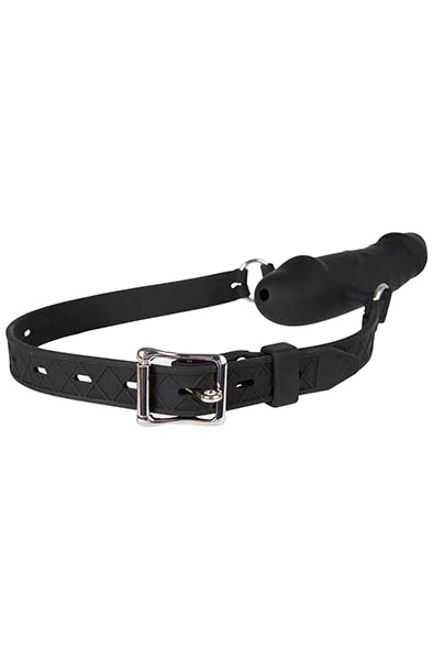 Denne gagen med en svart dildo av silikon kommer definitivt til å gjøre kvelden din interessant og kinky. Dildoen har et pustehull gjennom midten for komfort og en spenne som gjør den enkel å justere for en perfekt passform.