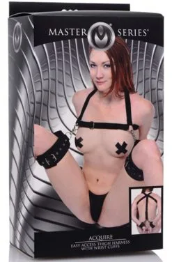 Master Series Acquire Easy Access Thigh Harness With Wrist Cuffs