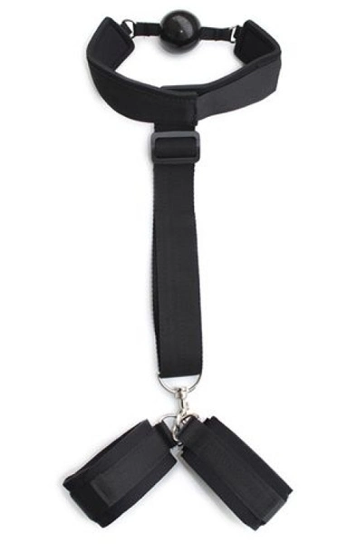 Dette settet med nylonhåndjern er koblet til en gagball som tvinger din underdanige til å forbli stille. Lekekameraten din vil adlyde din minste gest når armene forblir låst bak ryggen.