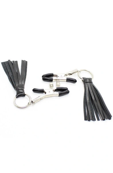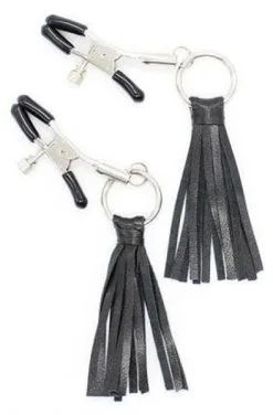 – Justerbare nippelklips utstyrt med dusker i skinn